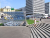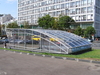 Прозрачная кровля над входом в метро позволила защитить ступеньки от налипания снега и льда, обезопасив спуск на станцию, а также защитить пассажиров от осадков.