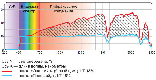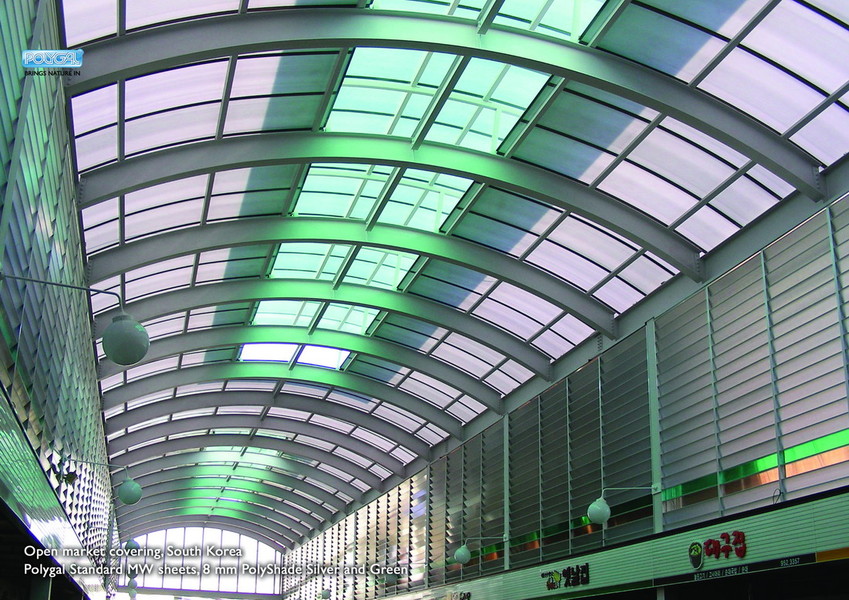 Сотовый поликарбонат Полишейд производятся с особым металлическим покрытием, усиливающим затеняющий эффект, что является прекрасным решением для регионов с жарким климатом. В покрытии Полишейд содержится специальный пигмент, который придает поверхности металлический блеск и обеспечивает оптимальный уровень отражения солнечного излучения, предотвращая излишний нагрев помещения.